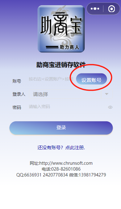 進(jìn)入小程序后,點(diǎn)擊“設(shè)置賬號(hào)”